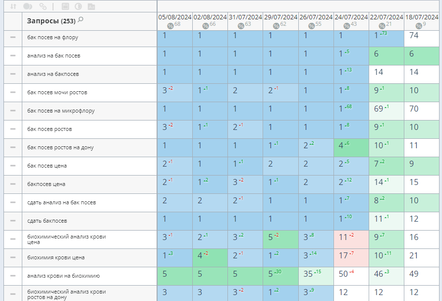 - собрали расширенное семантическое ядро по направлениям диагностики и анализов;